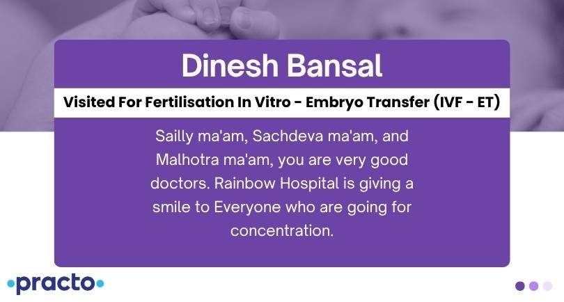 We are really happy to know about our positive test... it's just because of you Rainbow ivf team. It's a dream come true moment for me. Thank you so much Dr. Jaideep mam and all the staff members of rainbow hospital. Very supporting humble staff.